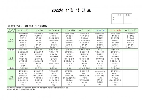 11월 둘째주 식단표 페이지 정보 작성자 은천노인복지회 작성일22-11-10 10:10 조회89,462회 댓글0건 관련링크 이전글 다음글 목록 답변 본문 . 이전글 다음글 목록 답변