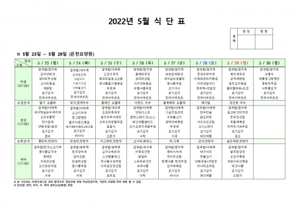 5월 넷째주 식단표 페이지 정보 작성자 은천노인복지회 작성일22-05-19 16:56 조회102,467회 댓글0건 관련링크 이전글 다음글 목록 답변 본문 . 이전글 다음글 목록 답변