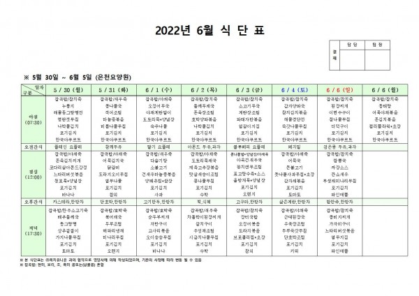 6월 첫째주 식단표 페이지 정보 작성자 은천노인복지회 작성일22-05-27 13:50 조회101,106회 댓글0건 관련링크 이전글 다음글 목록 답변 본문 . 이전글 다음글 목록 답변