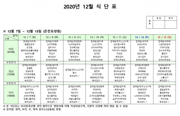 12월 둘째주 식단표 페이지 정보 작성자 은천노인복지회 작성일20-12-08 18:11 조회150,423회 댓글0건 관련링크 이전글 다음글 목록 답변 본문 . 이전글 다음글 목록 답변