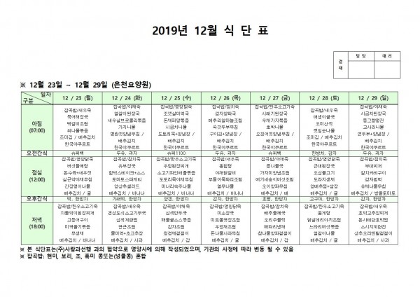 12월 넷째주 식단표 페이지 정보 작성자 은천노인복지회 작성일19-12-30 14:32 조회185,135회 댓글0건 관련링크 이전글 다음글 목록 답변 본문 12월 넷째주 식단표입니다 이전글 다음글 목록 답변