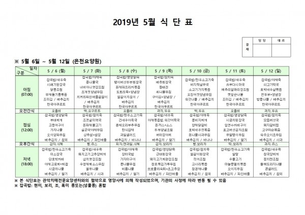 5월 첫째주 식단표 페이지 정보 작성자 은천노인복지회 작성일19-05-13 13:11 조회200,227회 댓글0건 관련링크 이전글 다음글 목록 답변 본문 5월 첫째주 식단표 이전글 다음글 목록 답변