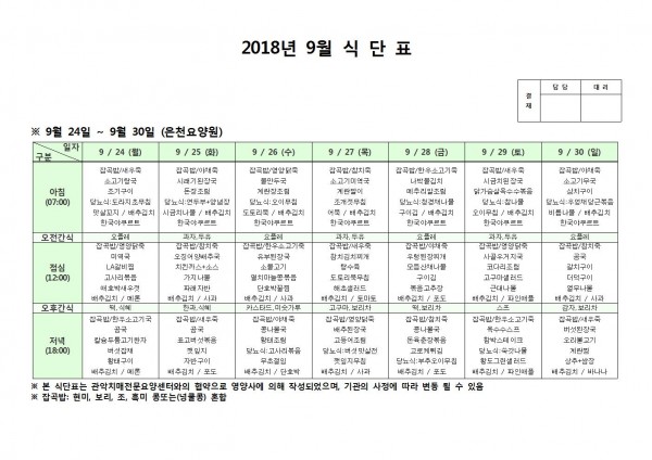 9월 넷째주 식단표 페이지 정보 작성자 은천노인복지회 작성일18-10-08 11:06 조회202,748회 댓글0건 관련링크 이전글 다음글 목록 답변 본문 9월 넷째주 식단표 이전글 다음글 목록 답변
