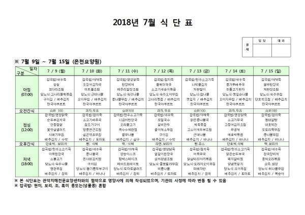 7월 둘째주 식단표 페이지 정보 작성자 은천노인복지회 작성일18-07-20 17:41 조회206,065회 댓글0건 관련링크 이전글 다음글 목록 답변 본문 7월 둘째주 식단표 입니다. 이전글 다음글 목록 답변