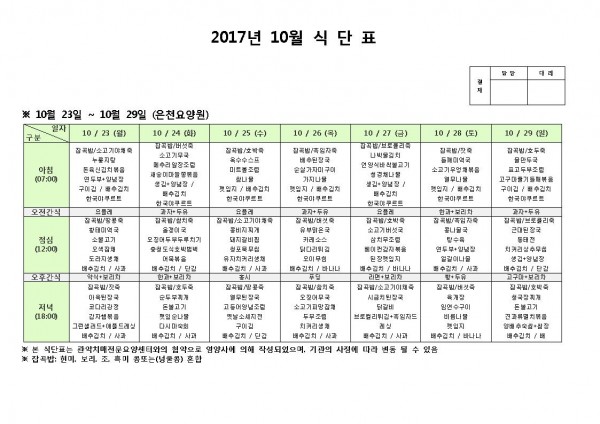 10월 넷째주 식단표 페이지 정보 작성자 은천노인복지회 작성일17-10-23 11:19 조회183,177회 댓글0건 관련링크 이전글 다음글 목록 답변 본문 10월 넷째주 식단표 이전글 다음글 목록 답변