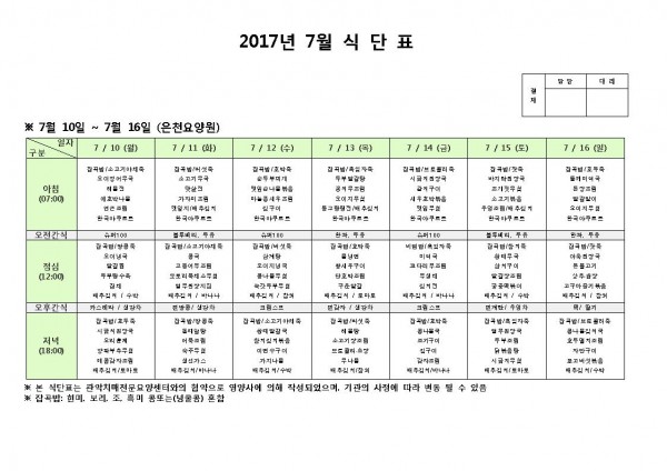 7월 둘째주 식단표 페이지 정보 작성자 은천노인복지회 작성일17-07-11 09:20 조회177,459회 댓글0건 관련링크 이전글 다음글 목록 답변 본문 7월 둘째주 식단표 이전글 다음글 목록 답변