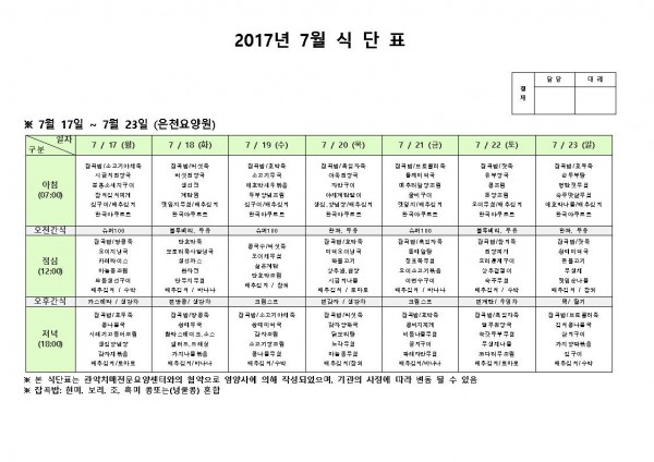 7월 셋째주 식단표 페이지 정보 작성자 은천노인복지회 작성일17-07-18 18:01 조회178,298회 댓글0건 관련링크 이전글 다음글 목록 답변 본문 7월 셋째주 식단표 이전글 다음글 목록 답변