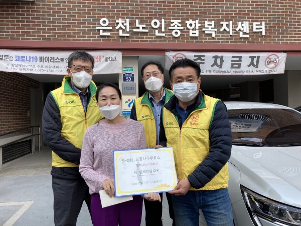 S-OIL 오동나무주유소 후원금 전달식 페이지 정보 작성자 은천노인복지회 작성일20-10-29 13:23 조회25,584회 댓글0건 관련링크 이전글 다음글 목록 답변 본문 동대문구 장안동 인근에 있는 S-OIL 오동나무주유소에서 후원금을 전달해 주셨습니다. 이전글 다음글 목록 답변