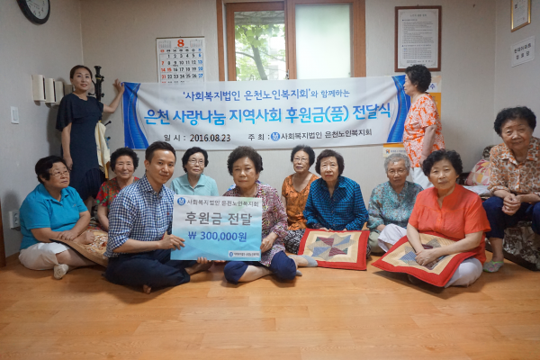 경로당 돕기 후원 페이지 정보 작성자 은천노인복지회 작성일17-01-16 16:39 조회38,035회 댓글0건 관련링크 이전글 다음글 목록 답변 본문 동대문 지역 열악한 경로당을 찾아서은천재가노인지원센터에서 후원금을 전달하였습니다.창방경로당, 전농3분회경로당, 방배경로당, 청량리현대경로당 이전글 다음글 목록 답변