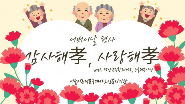 [서울시동대문구재가노인복지기관] 어버이날 기념 '감사해孝, 사랑해孝' 페이지 정보 작성자 은천노인복지회 작성일25-05-14 15:07 조회3,182회 댓글0건 관련링크 이전글 다음글 목록 답변 본문 2025년 5월 어버이날 기념으로 선물과 간식을 전달해드리며 행사를 진행하였습니다. 이전글 다음글 목록 답변