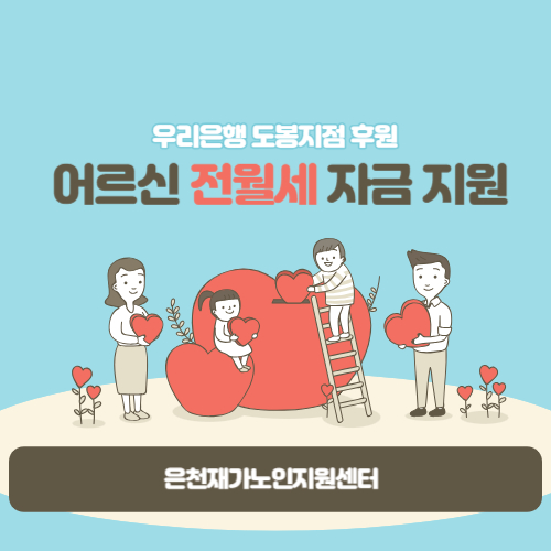 [재가노인지원서비스] 우리은행 전월세 자금 후원 페이지 정보 작성자 은천노인복지회 작성일23-07-12 16:03 조회10,482회 댓글0건 관련링크 이전글 다음글 목록 답변 본문 우리은행 도봉지점에서 저소득 어르신들을 위한 전월세 자금을 후원해 주셨습니다. 이전글 다음글 목록 답변