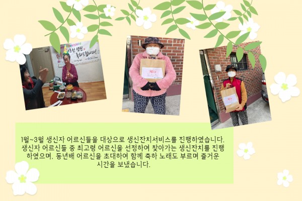 [재가노인지원서비스] 1분기 생신잔치 페이지 정보 작성자 은천노인복지회 작성일22-03-30 14:03 조회18,525회 댓글0건 관련링크 이전글 다음글 목록 답변 본문 1분기 생신잔치 이전글 다음글 목록 답변