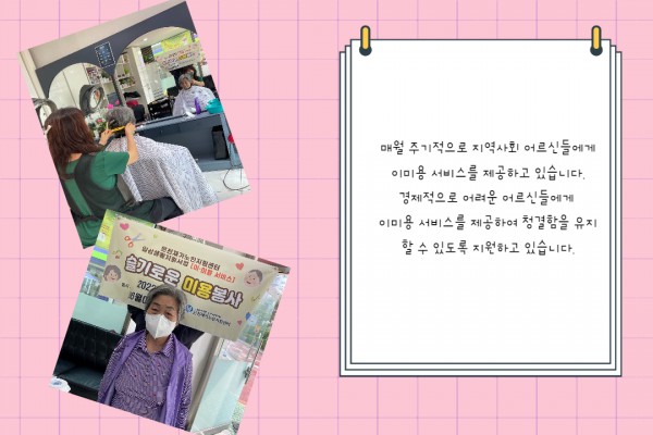 [재가노인지원서비스] 이미용 서비스 페이지 정보 작성자 은천노인복지회 작성일22-07-06 13:27 조회17,473회 댓글0건 관련링크 이전글 다음글 목록 답변 본문 6월 이미용 서비스 이전글 다음글 목록 답변