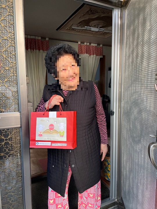 [재가노인지원센터] 설명절 선물지원서비스 페이지 정보 작성자 은천노인복지회 작성일21-02-26 09:42 조회24,474회 댓글0건 관련링크 이전글 다음글 목록 답변 본문 2021년 설 멸정을 맞이하여 어르신들을 찾아뵙고 선물을 전하면서 안부확인을 진행하였습니다. 이전글 다음글 목록 답변